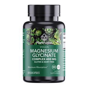 PlantFusion's Vegan Magnesium Glycinate Complex 400 mg offers superior absorption to support muscle relaxation, restful sleep, and cardiovascular wellness.