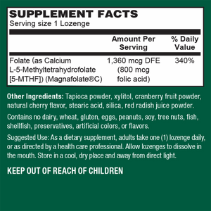 Vegan High Potency Methylfolate 5-MTHF delivers six times more bioavailable methylfolate in a fast-acting sublingual lozenge, supporting cardiovascular health and brain function.