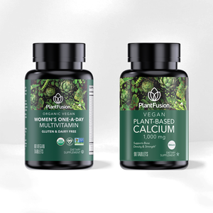 Organic multivitamin tailored to women’s unique nutritional needs with a plant-based calcium supplement designed to support bone health.