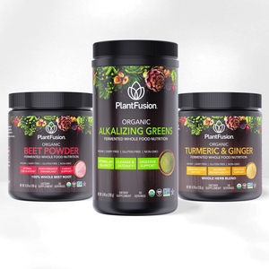 Fermented Superfood Blends to energize, balance, and protect your body. This bundle contains Beet Powder to support energy and circulation, Alkalizing Greens for detoxification and balance, and Turmeric & Ginger for inflammation and immune support.